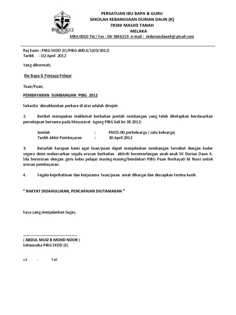 Surat Bayaran Yuran Persatuan Ibu Bapa Dan Guru Pdf